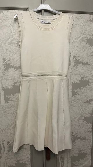 precioso vestido de Zara , de pinto fresco con escote y sisas como con encaje , la falda de nesgas