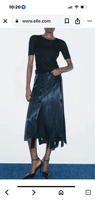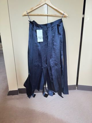 Falda de Zara con un diseño elegante y moderno. - Estampado paisley sutil. - Detalle de nudo en la cintura. - Adornada con flecos en el bajo.