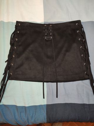 Minifalda de Zara con un diseño moderno y atrevido. - Detalle de flecos en la parte delantera y laterales. - Acabado tipo ante. - Aberturas laterales con cordones.