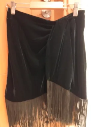 Falda de terciopelo con un diseño muy especial tipo años 20 y elegante. - Detalle de flecos en el bajo. - Tejido terciopelo. Nuevo con etiquetas.