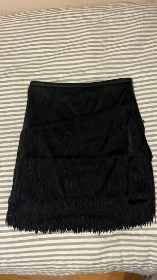 Falda de edición limitada de Zara con un diseño espectacular. - Detalle de flecos con lentejuelas. - Cinturón negro con hebilla dorada.