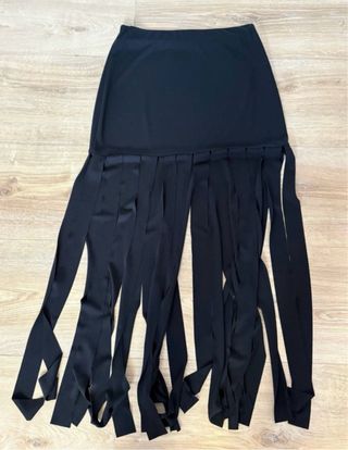 Falda midi con flecos de Zara. - Diseño con flecos largos. - Largo midi.
