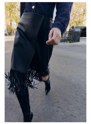 Falda de Zara con un diseño moderno y atrevido. Aventura delantera - Detalle de flecos en el bajo. - Material con acabado polipiel.