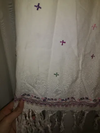 Falda larga de Zara con un bonito bordado en la parte inferior y detalle de flecos. - Diseño con tirantes. - Bordado floral en tonos morados y rosas. - Flecos decorativos en el bajo.