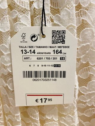 Talla XS con etiqueta. Sin estrenar. Tiene ligeros volantes y queda muy bonita. Color blanco y negro. No acepto devoluciones