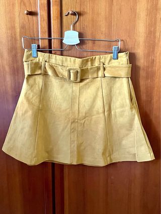 Falda con cinturón color mostaza como de ante. Talla S. Nueva, nunca puesta con la etiqueta. Comprada en Zara. Tengo más cosas en mi perfil!!