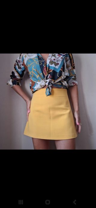falda de zara color mostaza talla S , con abertura delante , queda genial , perfecta para verano y NUEVA ,