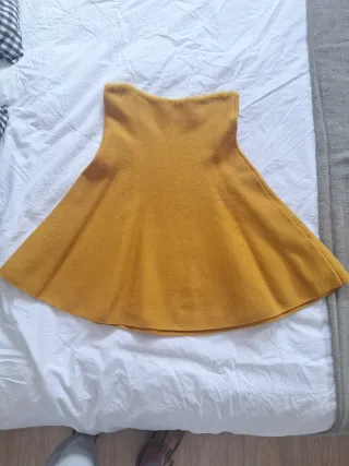 Falda de punto de Zara en color mostaza. - Tejido texturizado. - Cintura elástica. - forma de A fue un regalo pero me queda pequeña