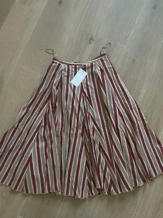 Falda midi de Zara con un diseño de rayas verticales. - Corte midi. - Estampado de rayas.