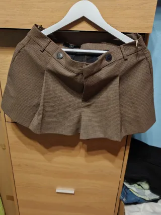 Falda pantalón de Zara en color marrón topo puesta en dos ocasiones, perfecto estado, talla xs. Marca de al lado de la cremallera penúltima foto típica de estar perchada. Adjunto foto de su precio en tienda. - Diseño elegante y moderno. - Tejido de calidad.