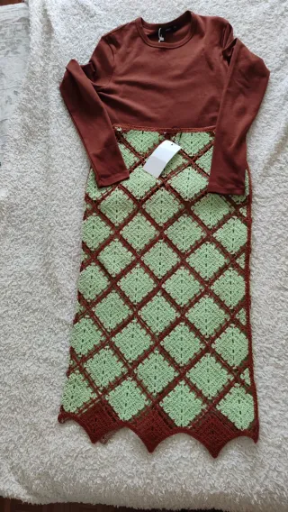 Falda midi de Zara con un diseño de crochet en rombos. Cremallera en un costado. No tiene forro. Nueva, con la etiqueta.