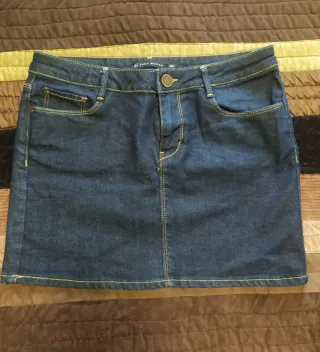Falda vaquera de Zara. - Diseño clásico. - Dos bolsillos traseros. - Abertura en la parte trasera. Elastica tambien sirve para embarazadas