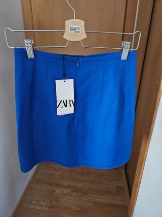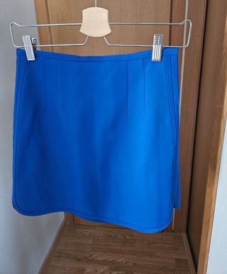 Minifalda azul de Zara, con etiqueta. Ideal para cualquier ocasión. Es una prenda elegante y cómoda. - Corte recto. - Cierre con cremallera invisible. - Tejido de calidad. Precio original 25,95€.
