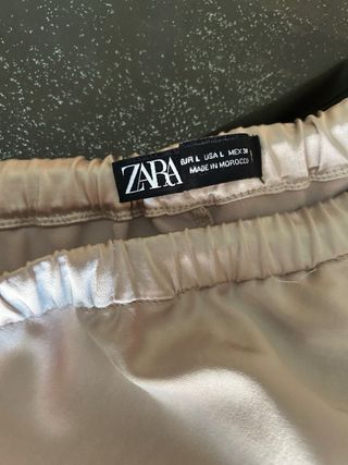 Falda de Zara con acabado satinado, ideal para eventos o fiestas. Su diseño drapeado le da un toque elegante. - Tejido satinado. - Diseño drapeado.