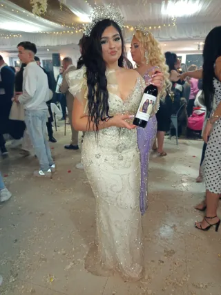 Vestido blanco de fiesta con pedrería