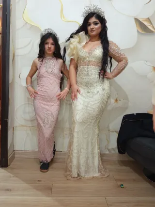 Vestido rosa y plateado con pedrería