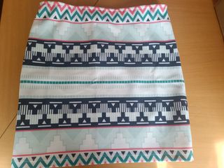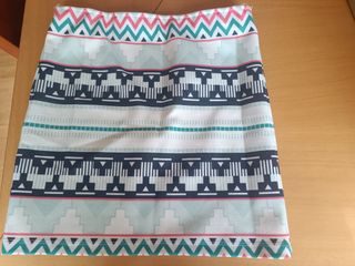 Minifalda con un bonito estampado geométrico en tonos azules y blancos. Presenta un diseño tejido tweed con detalles de flecos en la cintura. De zara niños, equivale a una 36. Si mides 1,65 te va a quedar bien - Cremallera en la parte trasera. - Tejido texturizado