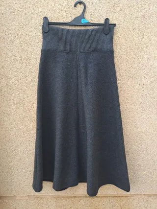 Falda midi de punto en color gris. Es una prenda cómoda y versátil. Sin estrenar, con etiqueta. - Cintura elástica de canalé. - Largo midi. - Corte acampanado.