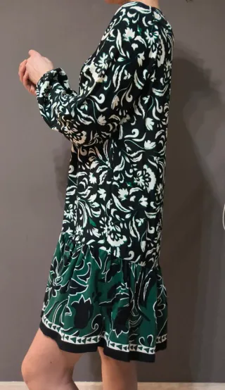 Vestido camisero de Zara con un bonito estampado floral. - Diseño con cuello en V. - Manga larga. - Falda con volantes.
