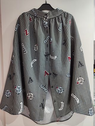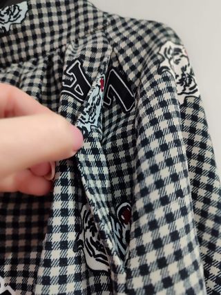Falda midi de Zara muy elegante, original, femenina, con un estampado de cuadros y detalles de parches. Da un toque diferente a tu estilo , tanto formal como casual. - Bolsillos laterales. - Diseño de cuadros en blanco y negro. - Parches temáticos distribuidos por toda la falda. - Corte midi con vuelo.