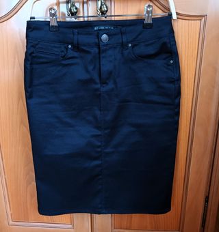 Falda de la marca zara en la talla M. Color negro. Tejido imitación cuero en color negro y relieve. Cierre con corchetes. En perfecto estado muy poco uso. Medidas de cintura a cintura 36 cm, de cadera a cadera 48 cm y de largo 44 cm.
