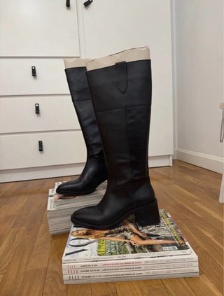 Botas altas de piel Zara negras