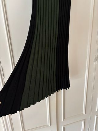 Falda plisada zara negra y blanca en satén,con cierre en el lateral de cremallera,usada un par de veces.