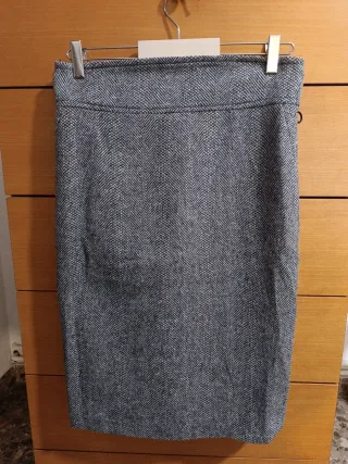 Elegante falda tubo de Zara, perfecta para cualquier ocasión. - Diseño clásico y versátil. - Cintura alta con detalle trabillas, para poner cinturón si se quiere. - Corte recto que estiliza la figura, con pliegues en costura. - Cierre trasero con cremallera y abertura trasera. - Forro liso color negro en viscosa. - Talla/38 - Composición: 94% lana + 6% viscosa. - Largo total aprox/ 67 cm. **IMPECABLE **SOLO SE HA PUESTO 2 VECES**