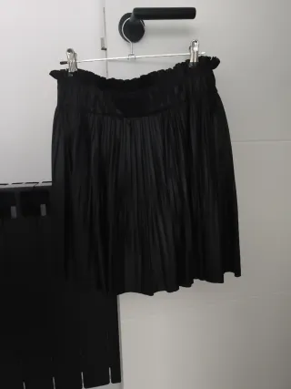 Falda midi plisada de polipiel negra. Es una prenda elegante y versátil - Diseño plisado que le da un toque sofisticado. - Cintura alta que estiliza la figura. - Confeccionada en polipiel de excelente calidad. - Marca Zara. - Talla XS - En buen estado