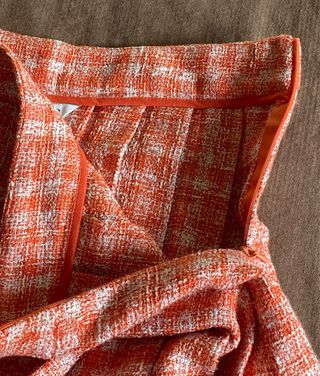 Falda de Zara con un diseño jaspeado en cuadros de color naranja y blanco. Su corte plisado le da un estilo moderno y favorecedor. - Tejido texturizado. - Diseño plisado. Largo 42cm. Cintura 36cm.