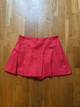 Preciosa falda corta de Zara en color rojo. Un básico versátil para cualquier ocasión. - Diseño con pliegues. - Cintura alta.