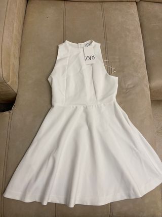 Vestido blanco de Zara, sin estrenar. Diseño elegante y moderno. - Corte halter. - Cremallera en la espalda. - Falda con vuelo.
