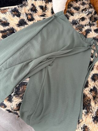 Pantalón falda de tela ligera y fluida. - Diseño versátil. - Cintura con cordones para ajustar. - Corte ancho y cómodo.