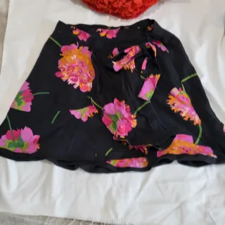 Falda con cintura elástica y vuelo. - Diseño con forro interior. - Tejido ligero y cómodo. Poliéster. - Marca Zara, talla L. - Nueva, sin etiquetas.