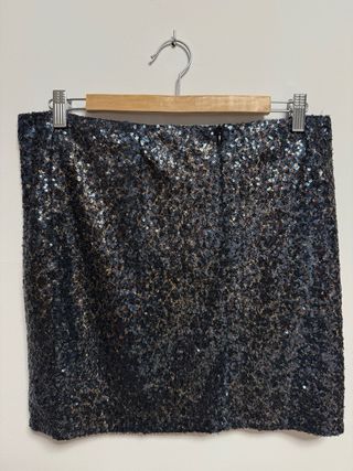 Falda Stradivarius fiesta, negra hilo plata, Nueva