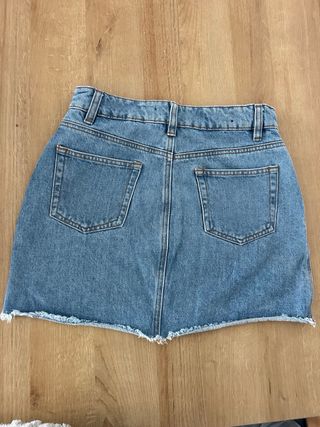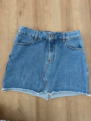 Falda corta vaquera de corte moderno, ideal para cualquier ocasión. Sin estrenar - Bajo deshilachado. - Bolsillos delanteros y traseros.