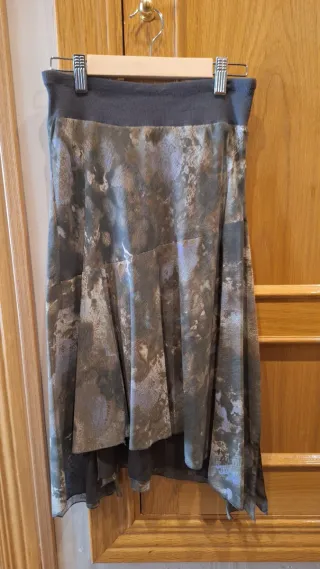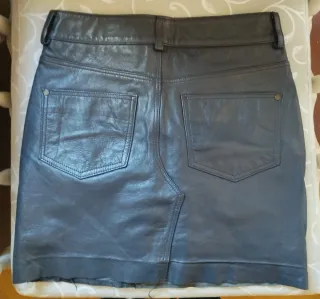 Preciosa falda asimetríca en cuero vacuno auténtico.Comprada en peletería.Pone talla 40 pero realmente talla como una 44-46. Super estilosa y elegante.Tendecia total Sólo un pequeño desperfecto en la parte superior lateral( en las fotos se muestra)