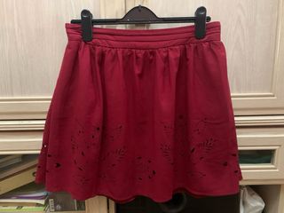 Falda corta de color roja anaranjada. La cintura es elástica. Es talla M de Daphnea.