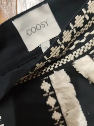 Falda larga de diseño artesanal con detalles en blanco.Está falda cien por cien algodón y artesanal de Coosy, tan solo fue utilizada en una ocasión durante un par de horas. Es absolutamente ideal y fácil de combinar.. perfecta para cualquier ocasion. Las medidas en las fotos aunque debo señalar que da muy muy muy poca talla....Aunque pone XS es mas una XXS. la cintura y cadera son muy, muy estrechas.la cintura apenas mide 62 cm