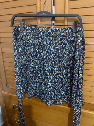 Falda con tirantes y un bonito estampado inspirado en las olas. Los tirantes se pueden poner y quitar, es talla única, lleva goma en la cintura. Se compró en Madrid en un puesto de artesanía (hecho a mano). Usadas un día. - Diseño con tirantes cruzados. - Cierre de botones en la parte delantera. - Estampado de olas en tonos azules y blancos.