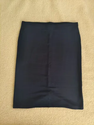 Falda lápiz de color azul marino, con un diseño elegante - Cintura elástica. - Tejido suave y cómodo. - Apertura en la parte trasera para mayor comodidad