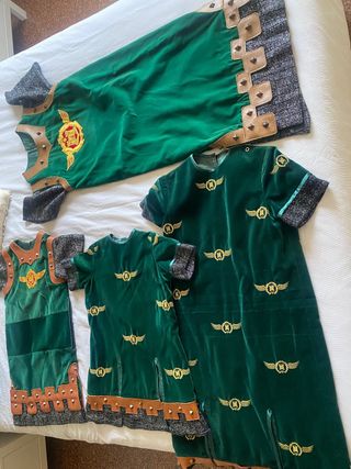 túnicas de la filà Alcodianos de niño y niña. botas de diferentes tamaños, mallas y cotamallas de niño y niña falda de alcodians talla 2/6 y capa de alcodiana talla 2/6 cinturón alcodiano de niño cinturón alcodiana niña