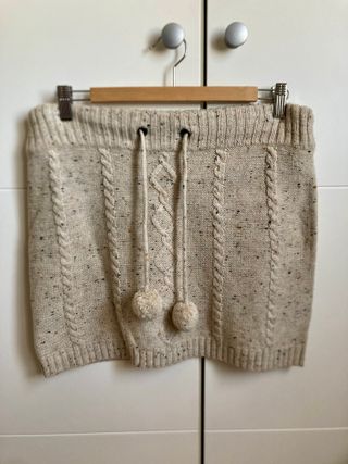 Falda de punto grueso con un diseño tejido y detalles de trenzado. Cintura con cordones y pompones.