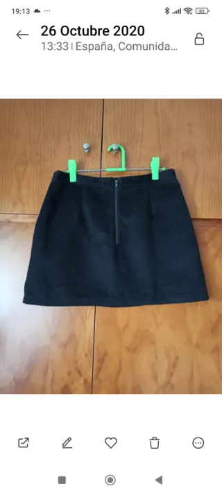 Usada una vez, medidas cintura 46cm, cadera 59cm,tejido ligeramente satinado con caída, cierre con cremallera invisible, sale un volante de un lateral