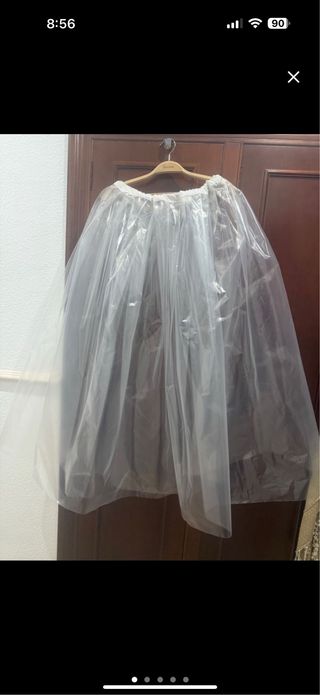 Protector para falda de fallera, ideal para mantenerla en perfecto estado. Con un delicado detalle de puntilla en el bajo. se hace a tu medida - Material transparente. - Diseño con pliegues. - Detalle de puntilla en el borde inferior.