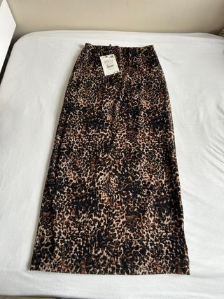 Falda larga con estampado de leopardo. - Diseño ajustado. - Tejido ligero y fluido. - Nueva con etiqueta.