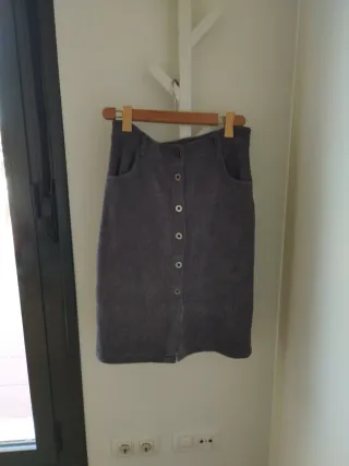 Falda de corte recto con un diseño de imitación pana. Es una prenda versátil y cómoda. - Cierre de botones. - Bolsillos laterales.