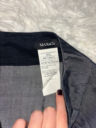 Elegante falda gris de Max&Co con un detalle de lazo en la parte delantera. - Diseño con pliegues. - Cremallera en la espalda. - Tejido con brillo sutil.