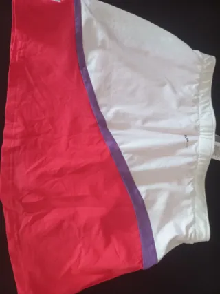 Falda short con un diseño a rayas verticales. - Diseño a rayas blancas sobre fondo negro. - Detalle de bolsillo lateral con anilla. - Estilo plisado. Algunas tienen una puesta están prácticamente nuevas, la de color azul no me lo he puesto, también puedo vender las faldas por separado a 7€ cada una . Están un poco arrugadas ya que los tenía guardado.