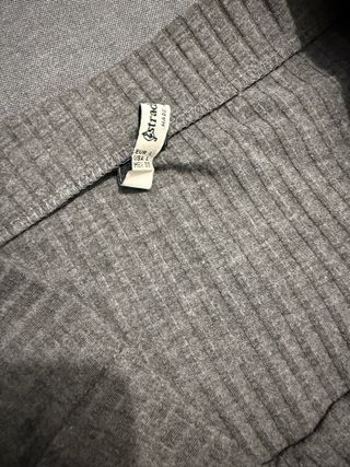 Falda larga de tejido acanalado en color gris. Larga hasta los tobillos. Tejido elástico y cómodo. Cintura alta. Puesta una vez.